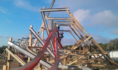 Crazy!  That's the first thing I thought when I saw this photo that Six Flags Fiesta Texas released of the Iron Rattler under construction.  Crazy in a good way, of course.